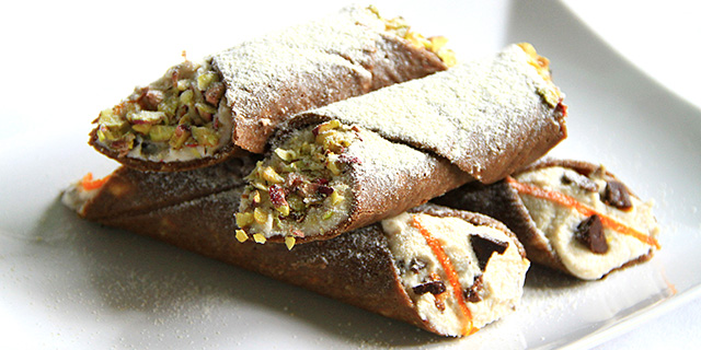 La ricotta: frulla mele sbucciate, vaniglia, succo e scorza tritata del limone. Trita anche le scaglie di cocco e uniscile al composto, fino a raggiungere una consistenza da panna montata. Unisci il concentrato di dattero e frulla un’ultima volta. Fai indurire in frigo. Taglia a pezzi cioccolato e canditi o cedro da unire e fai riposare in frigo per un’oretta, quindi amalgama i pezzi con la crema e riempi i cannoli, facendola passare in un imbuto di carta oleata, badando a far scendere anche canditi e cioccolata.