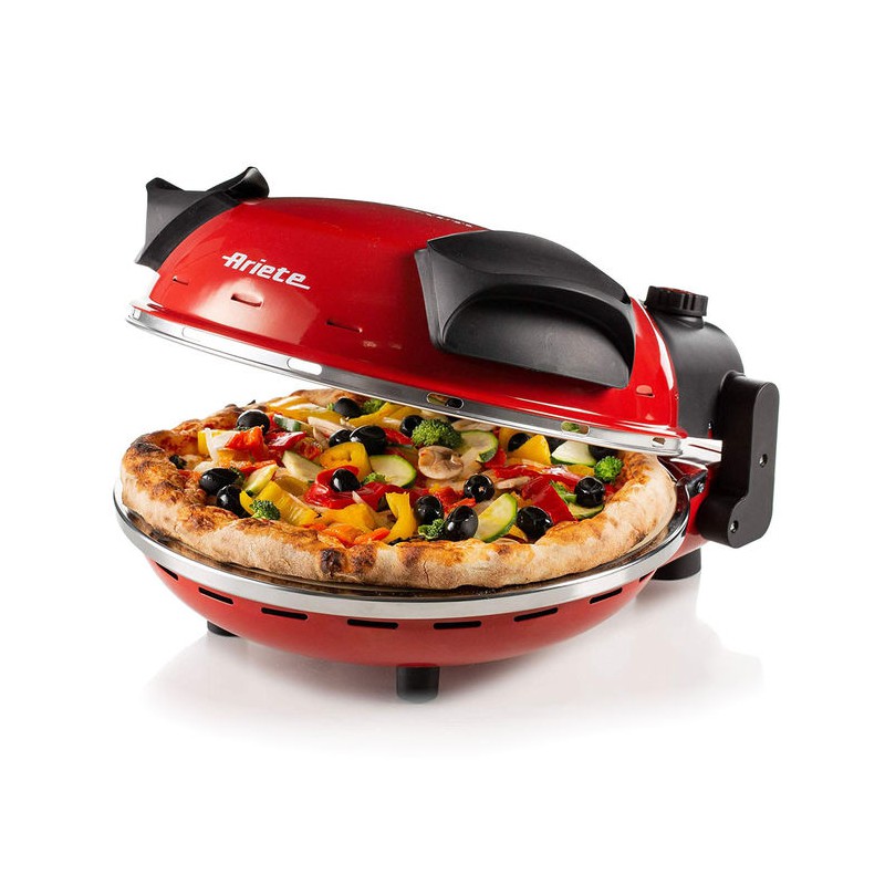 Il nuovo forno pizza di Ariete sarà l’alleato in cucina di tutti gli amanti della pizza. Il prodotto migliora le sue prestazioni con una piastra in pietra refrattaria di alta qualità dal diametro di 30cm che permette di cuocere e/o riscaldare pizza e focacce a cinque livelli di cottura, fino a una temperatura massima di 400 gradi. La cottura veloce ad alta temperatura permette di replicare lo stesso metodo dei forni a legna e in soli 4 minuti si ottiene una cottura perfetta per la pizza fatta in casa, e 2 minuti per la pizza surgelata. Gustare la pizza in casa non è mai stato così semplice e veloce. Provare per credere!