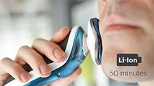50 minuti di rasatura senza filoLa batteria agli ioni di litio di permette di avere fino a 50 minuti di utilizzo con una ricarica di 1 ora o - grazie alla funzione ricarica rapida - una rasatura completa con una ricarica di 5 minuti. Tutti i modelli della serie 7000 sono studiati per funzionare solo senza filo, per garantire la sicurezza in ambienti umidi. |