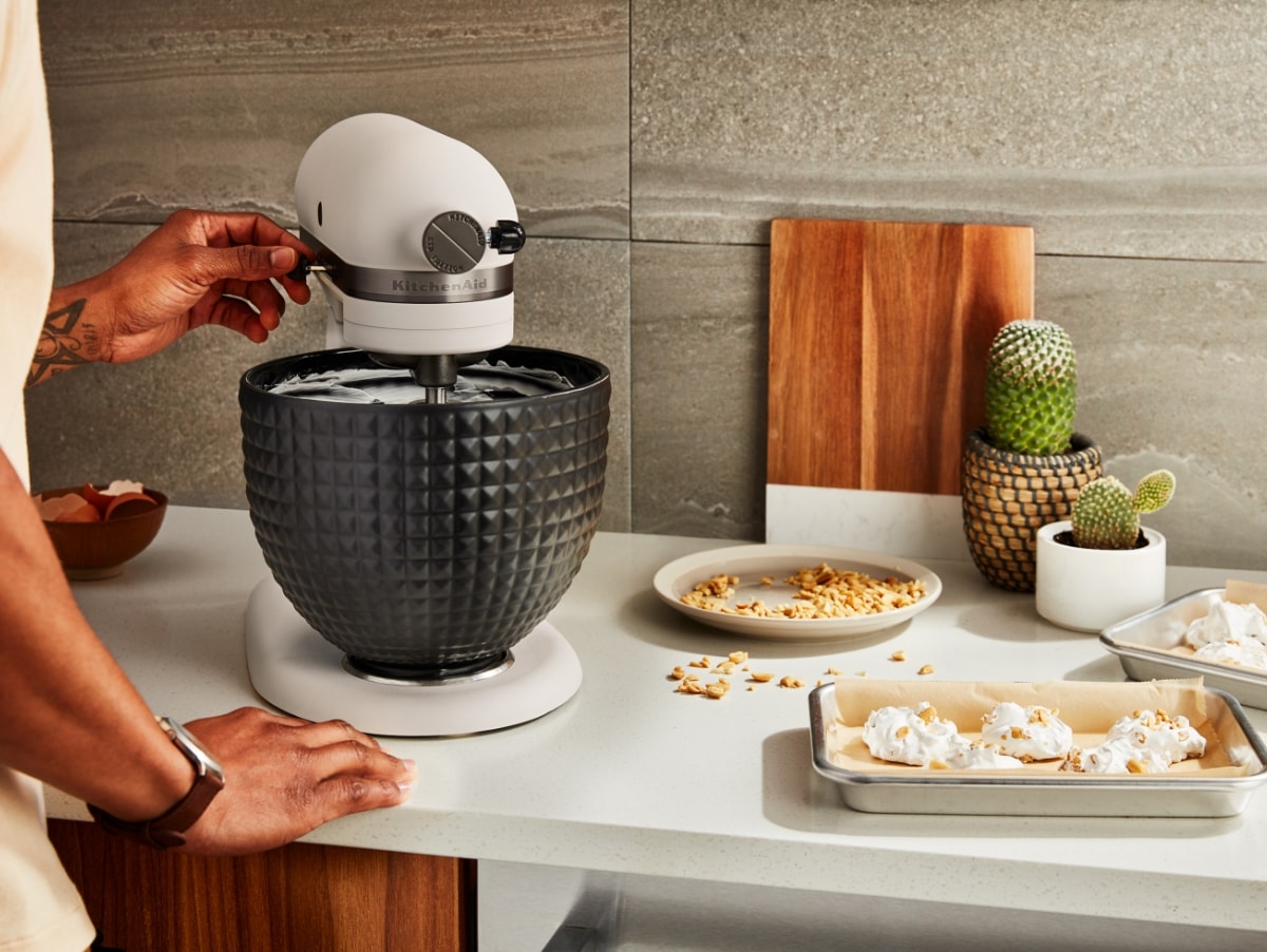 Il colore è una parte importante della nostra storia. Realizziamo edizioni speciali limitate per darti l'opportunità di distinguerti. Questo modello combina un mixer color sabbia con una ciotola nera con borchie tridimensionali che cattura la luce nella tua cucina.
