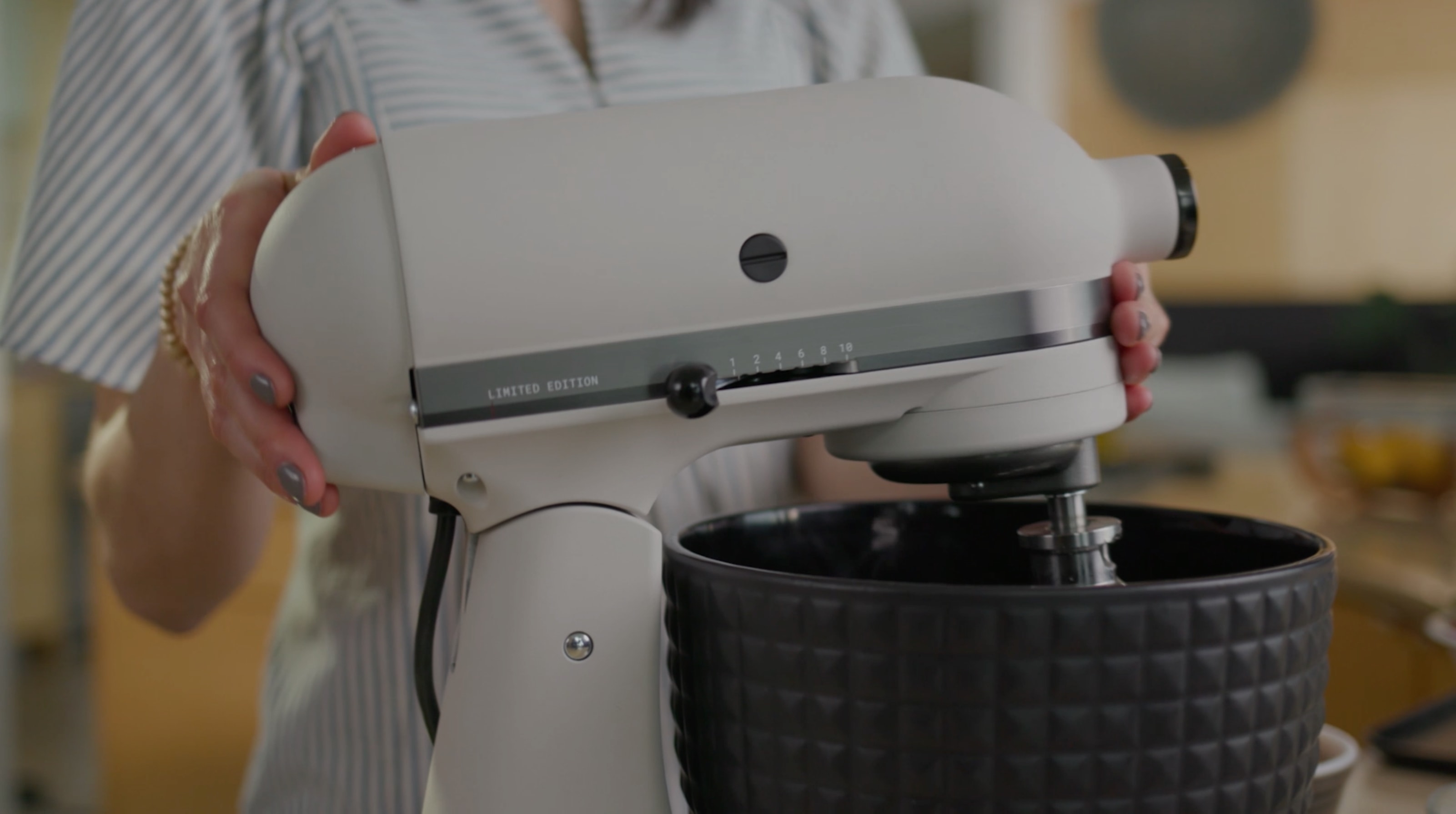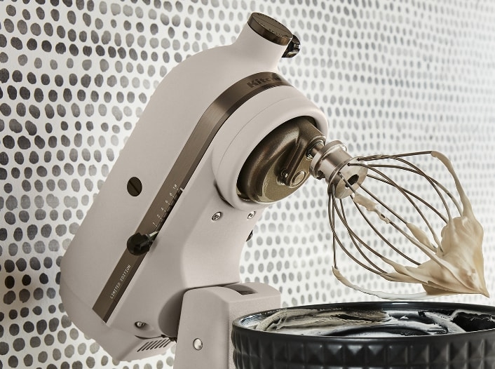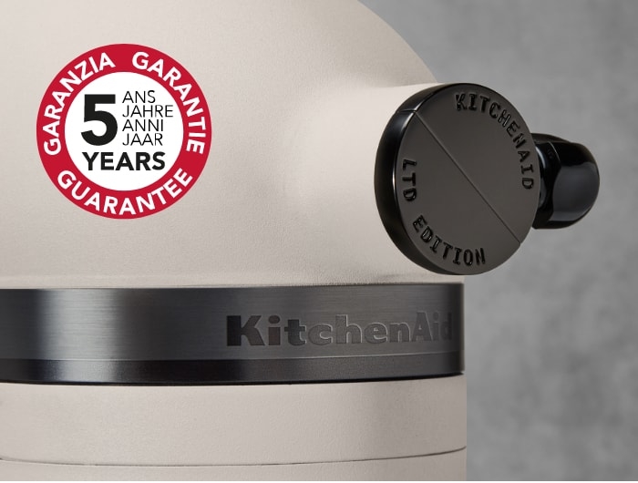 Il nostro robot da cucina con testa reclinabile da 4,8 L Artisan in ""Light and Shadow"" rappresenta il culmine di oltre 100 anni di innovazione e competenza. Con l'iconica silhouette liscia di KitchenAid, questa edizione limitata è caratterizzata da un rivestimento smaltato color sabbia ed è dotata di una ciotola in ceramica nera con borchie tridimensionali, per rendere speciale ogni momento. Il suo design esclusivo e resistente la rende un'estensione delle tue mani, consentendoti di esprimerti attraverso la cucina. Dispone di diverse velocità (da 1 a 10) e di un motore a trasmissione diretta silenzioso e progettato per durare a lungo, senza alcuna perdita di potenza tra il motore e gli accessori. Il movimento planetario originale garantisce una miscelazione veloce ed efficace con 59 punti di contatto per rotazione nella ciotola. Il robot permette di lavorare fino a 12 albumi medi e 1 kg di farina comune, 1 L di panna montata, 3,2 kg di purè di patate o 108 biscotti. Gli accessori di questo robot da cucina sono tutti in acciaio inox per la massima resistenza. La frusta è utilizzata per incorporare aria nelle uova e nella panna, il mescolatore (frusta piatta) per mescolare ingredienti densi e il gancio impastatore è adatto per impasti lievitati come pane o pasta. Una volta finito, puoi semplicemente mettere la ciotola e gli accessori in lavastoviglie e ripulire il corpo. Gli appassionati di cucina apprezzeranno l'aggiunta di accessori opzionali (venduti separatamente) all'attacco per accessori multifunzione. Puoi collegare ciò che desideri, dalla sfogliatrice al set per tagliare la pasta, fino al macina cereali e all'accessorio per tagliare a strisce fruatta e verdura, per scatenare la tua creatività.