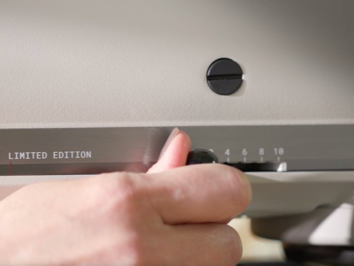 Sposta la leva di controllo della velocità, a seconda della ricetta che stai preparando. Seleziona la velocità 1 per mescolare delicatamente, la velocità 2 per lavorare l'impasto, le velocità fino 6 per sbattere e montare e la velocità 10 per montare velocemente.